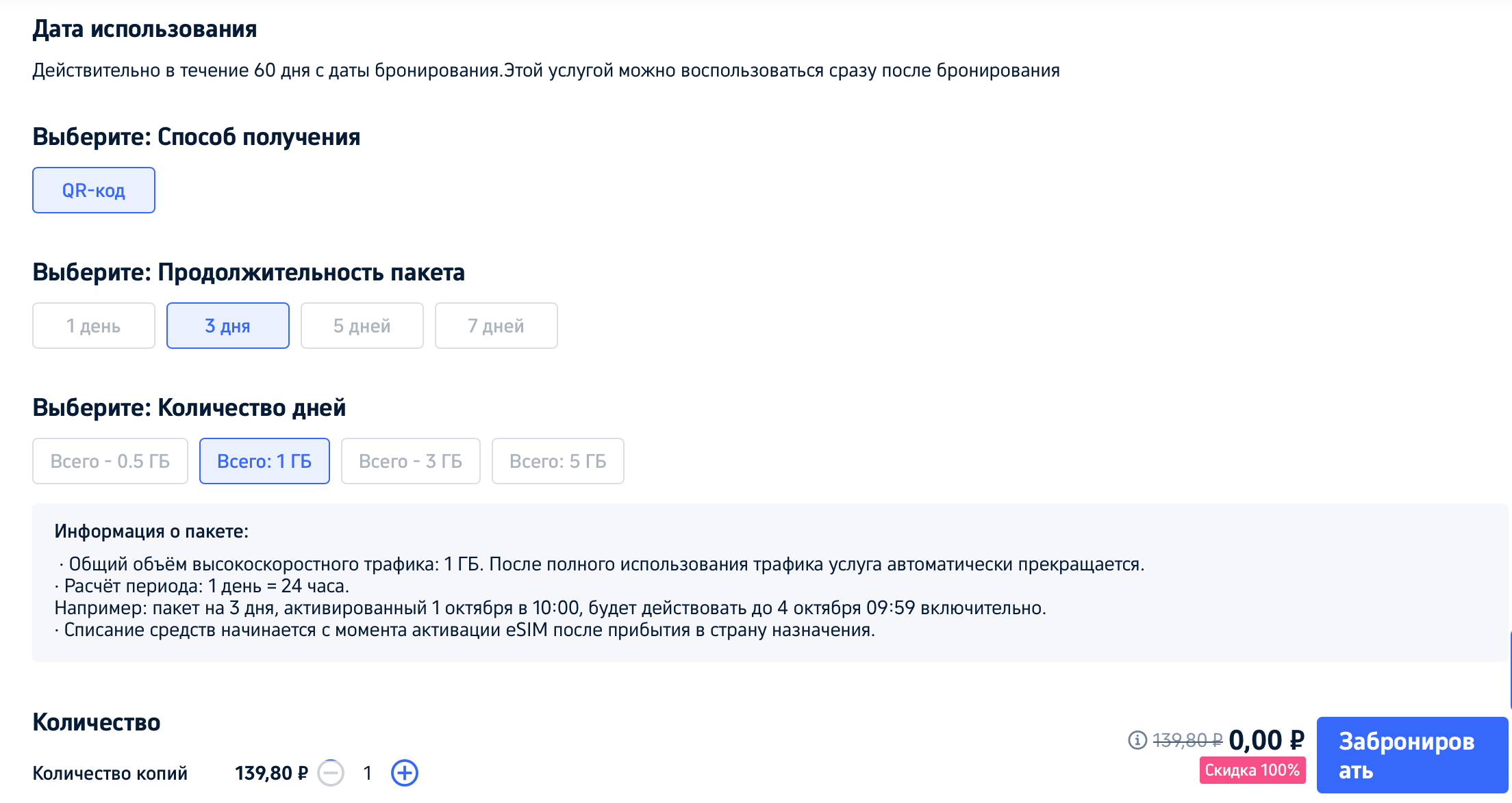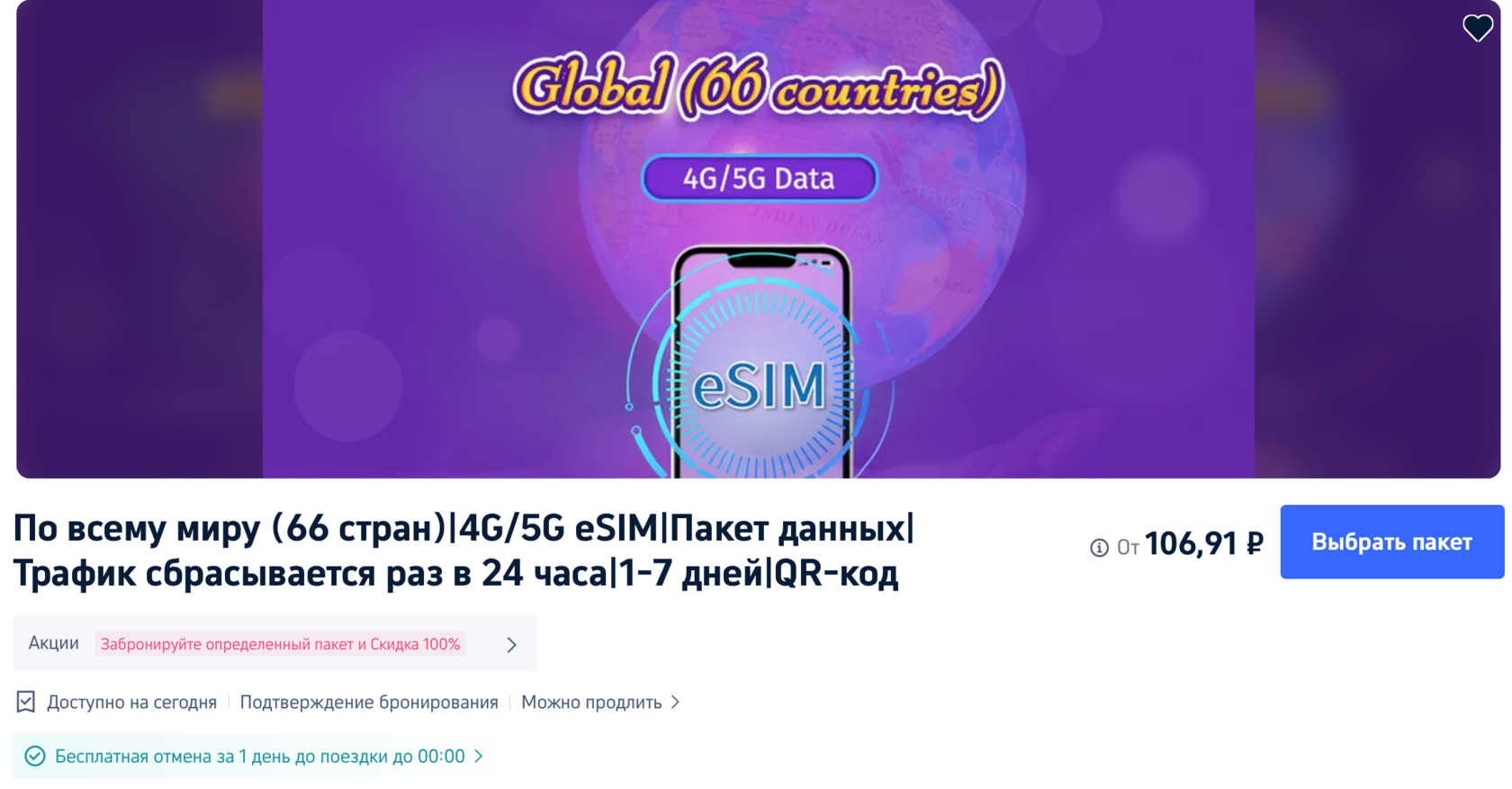 Без объявления каких-либо акций и совершенно случайно я зашла на страницу глобальной есим для 66 стран мира, там и увидела предложение приобрести есим за 0 рублей - всего 1 Гб на 3 дня, но все равно приятно.