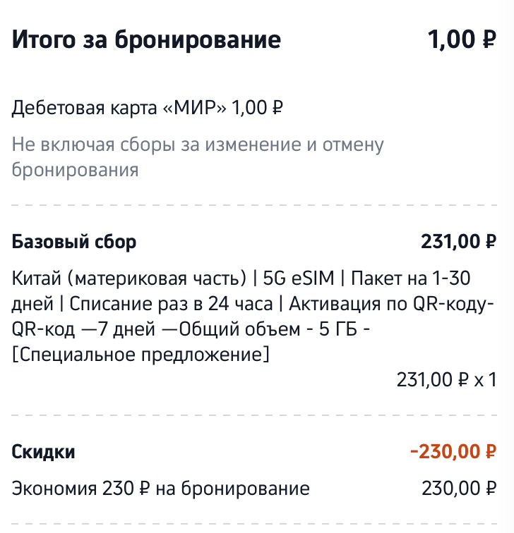 Причем на странице, где перечислялись доступные для приобретения есим, в отношении этой вообще не было указано на наличие каких-либо скидок.