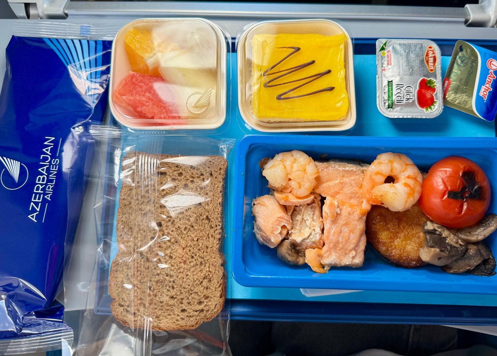 У Azal в стоимость билета входит полноценный чемодан в ручную кладь весом до 10 кг, бесплатный выбор места в салоне самолёта и вкусное питание, заранее кстати можно выбрать специальное питание, например, детское или с морепродуктами, и наслаждаться в полете вкусной красной рыбкой и креветками.
